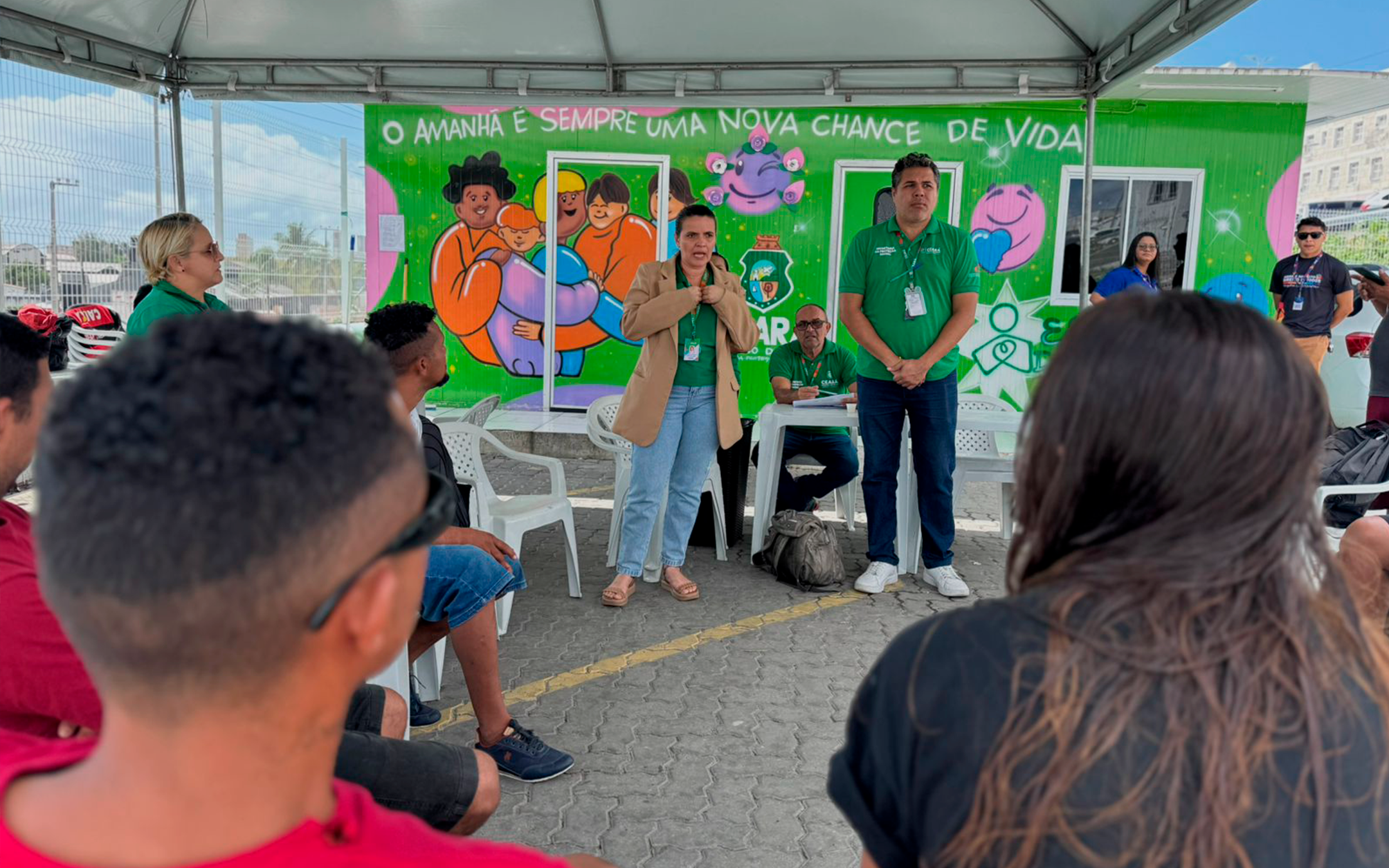 Em parceria com a Defensoria Pública do Estado do Ceará (DPCE), a Estação do Cuidado sediou a carreta de atendimentos itinerantes do projeto Defensoria em Movimento. Moradores da região e pessoas em situação de rua tiveram acesso gratuito à orientação e atendimento jurídico nas áreas de família, saúde, consumidor, infância e juventude, criminal e execução penal. A triagem dos casos e as orientações ocorreram nos dias 12 e 13, e os atendimentos jurídicos com defensoras e defensores foram realizados no dia 14.