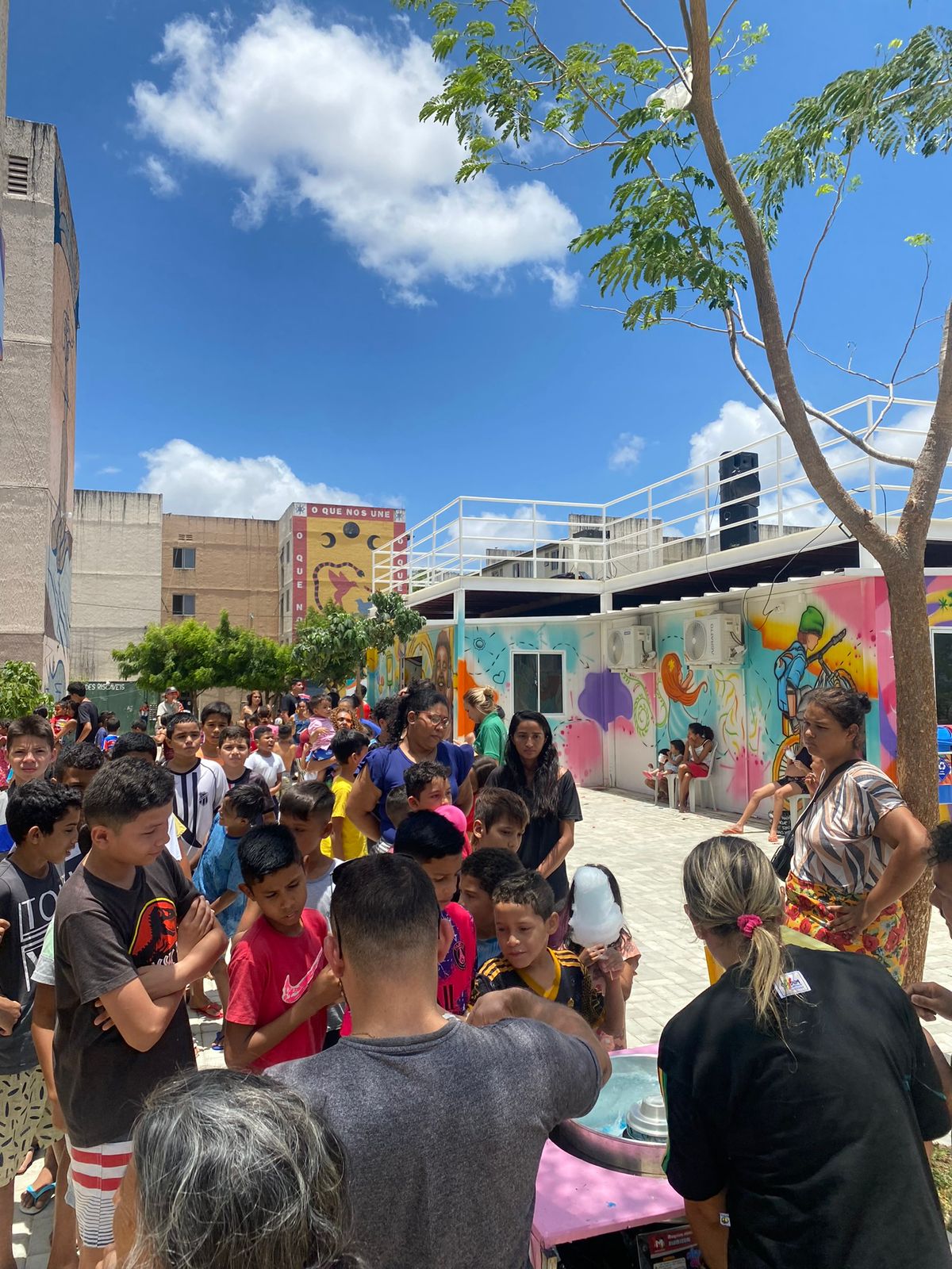 Além das formações, o Instituto também colaborou na organização da festa do Dia das Crianças em 2023, levando alegria e atividades lúdicas ao equipamento Zona Viva. Pintura de rosto, show de mágica, brincadeiras, guloseimas e muita diversão tomaram conta do espaço, proporcionando um momento inesquecível para centenas de crianças do Residencial José Euclides.