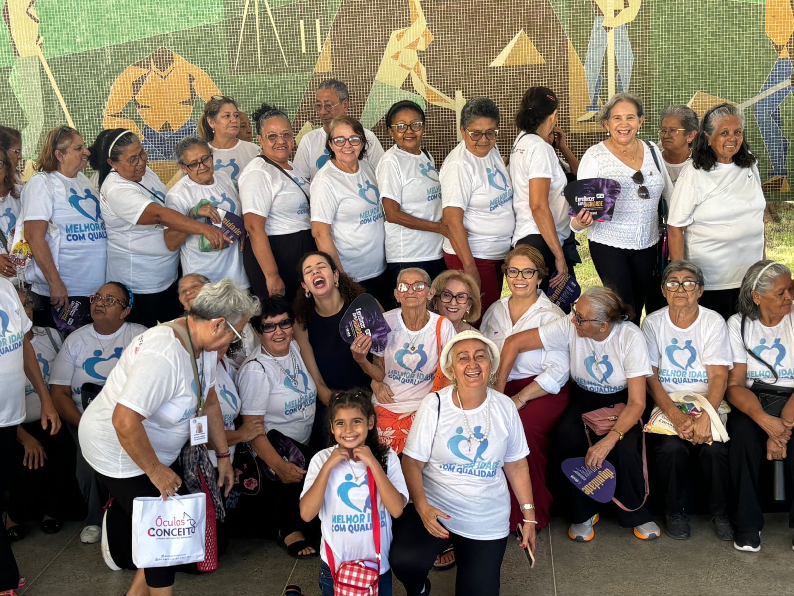 O ponto alto da programação aconteceu na terça-feira, 10 de junho, quando o IAC promoveu uma grande ação em Fortaleza com foco em saúde, prevenção e empoderamento. A atividade começou com uma aula aberta do projeto FelizIdade, que reúne semanalmente pessoas idosas para práticas de atividade física, em parceria com a Secretaria do Esporte do Estado do Ceará. A iniciativa busca muito mais do que movimento corporal: é uma estratégia concreta de promoção de saúde, autonomia e autoestima, elementos essenciais na prevenção da violência.